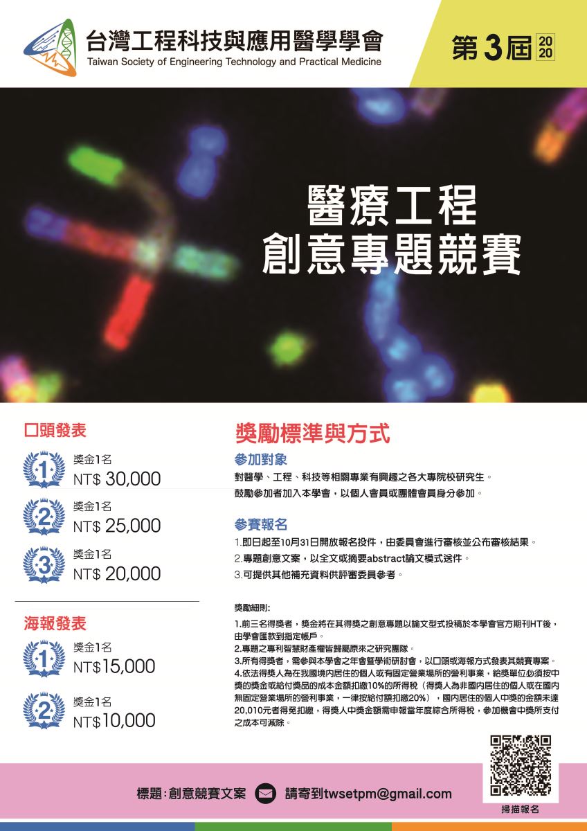 第三屆醫療工程創意專題競賽報名中:https://reurl.cc/j5MvXZ